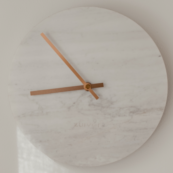 This stunning wall clock is crafted from a circular piece of real marble, giving it a natural and unique look that is sure to impress.